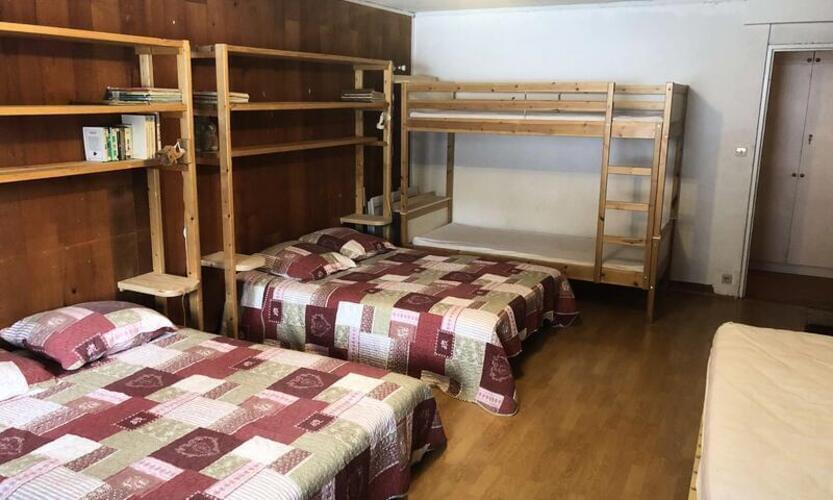 - 1 bedroom with a bunk bed and 2 double beds