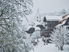 Ski slopes take you directly to the town center, so all accommodation facilities are very close, there is also a free ski bus. Enjoy the special atmosphere with an evening stroll through the magical village full of shops, restaurants, stalls with local supply and casinos. You can visit and enjoy theaters, skating rinks, slides, tube sledding, curling, snowshoe walks, sightseeing carriage ride, farm with llamas and alpacas, and swimming pools.